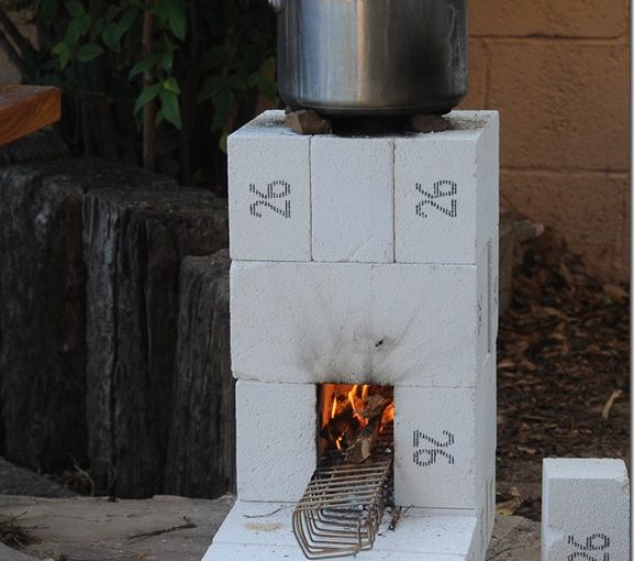 We have a wood burning fireplace, but it is not set up for cooking. However, we keep wood around for the cold winter nights. Obviously, mankind has cooked on wood basically forever. So, obviously it is possible. I was introduced to the rocket stove developed by Aprovecho, which is intended to reduce fuel consumption by more efficiently transferring the wood’s energy into the cookpot, reduce air smoke and soot inhalation by combusting more efficiently, and improve burn safety. They have ten design principals, summarized: